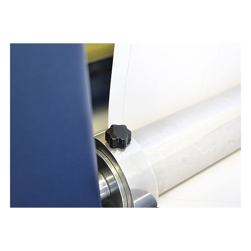 Pendant le fonctionnement, les capteurs à ultrasons et les contrôles électroniques veillent à maintenir une tension constante sur le support malgré la variation du diamètre du rouleau.